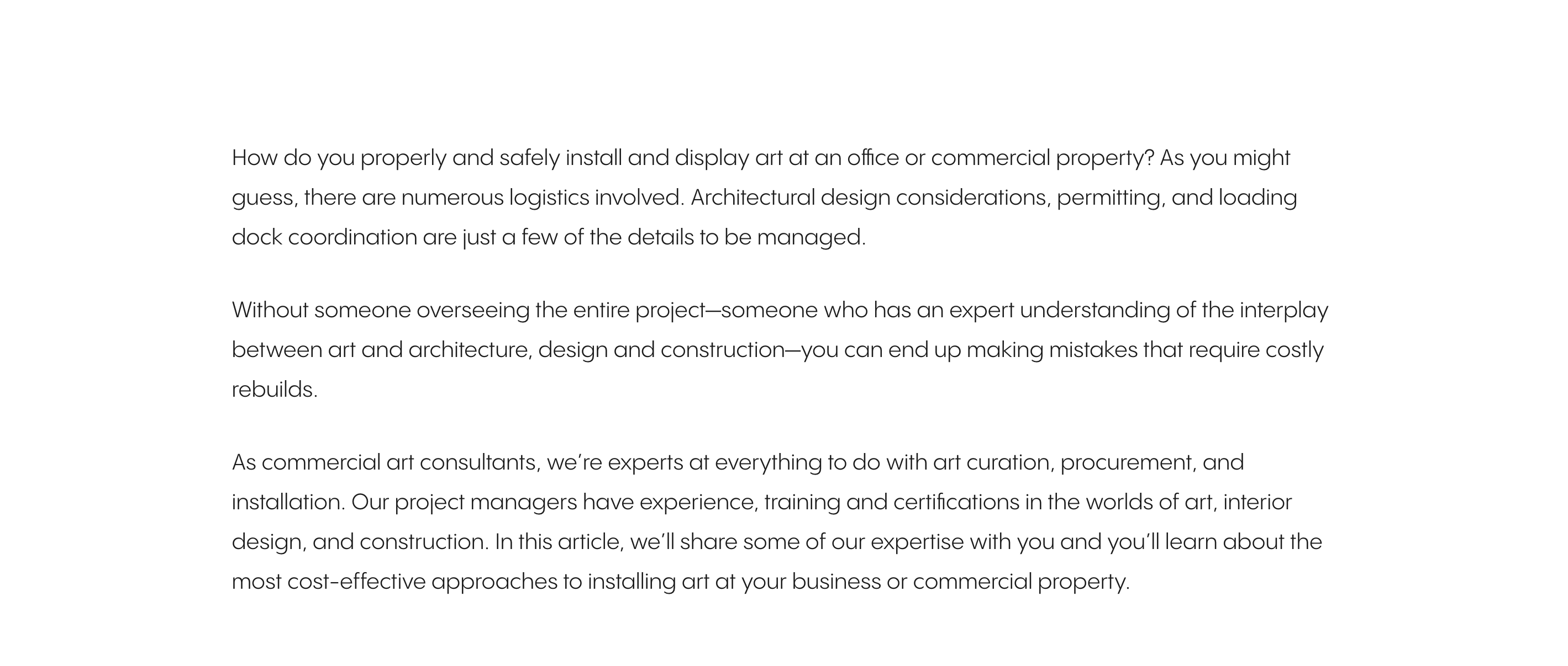 What’s On This Page? A B2B blog post for a commercial art consultant.